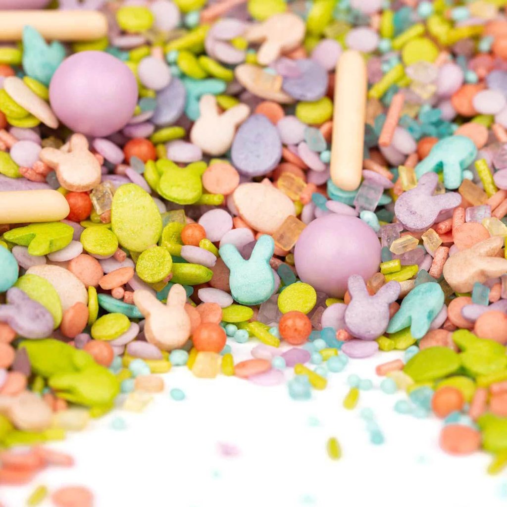 Ce décor en sucre est composé de différentes formes aux couleurs variées : vert, bleu, mauve, rouge et saumon. Il est parfait pour décorer des gâteaux, des tartes, des muffins, des donuts, ainsi que de la glace et autres desserts, à l’occasion des fêtes de Pâques.