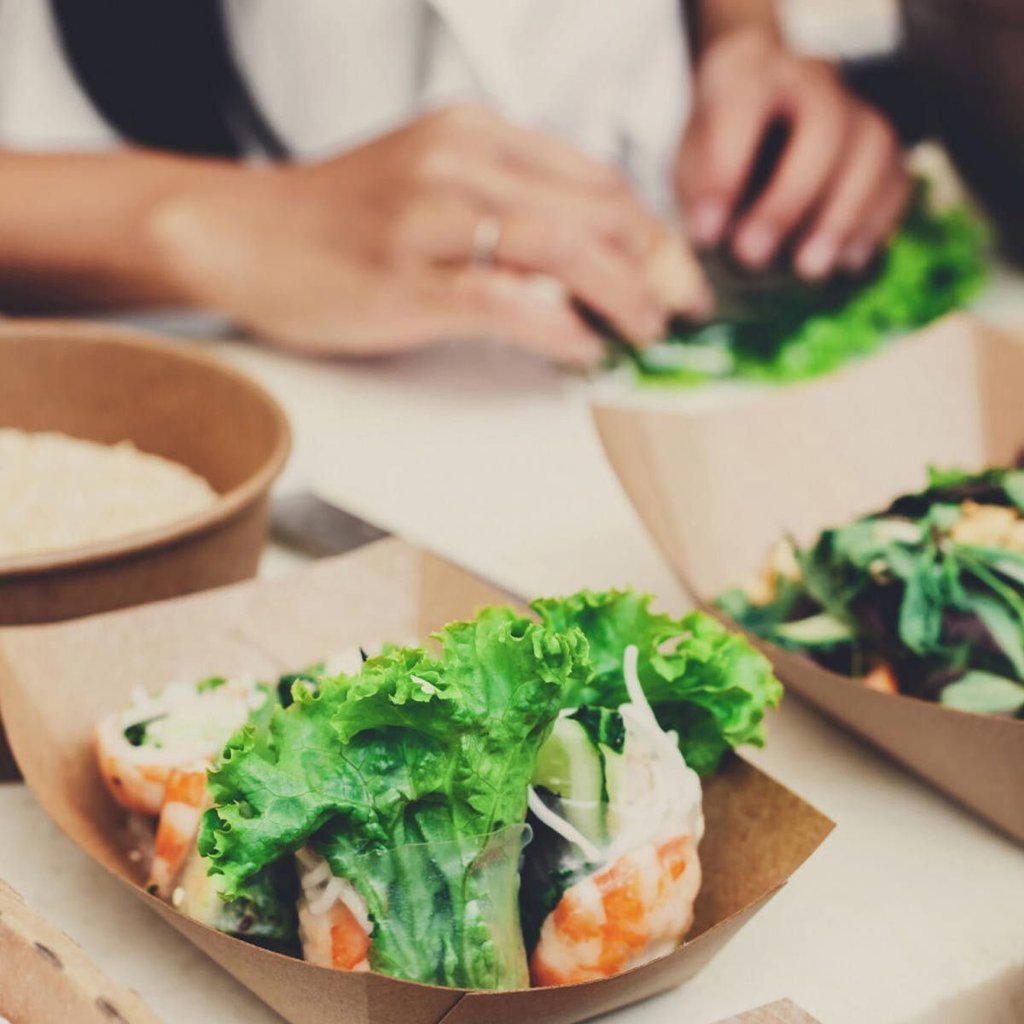 Emballage jetable brun en forme de bateau, optimal pour le finger food. L’emballage qui repousse les matières grasses en carton brun stable convient pour les petites compositions, froides ou chaudes, et est compatible micro-ondes.